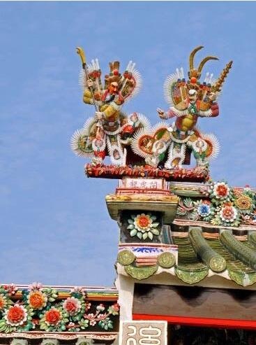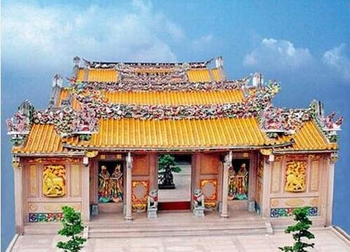 神廟的名稱(chēng)極多,有天后宮、九天玄女廟、武帝廟、文廟、城隍廟、三山國(guó)王廟、雙忠公廟、福德廟、土地廟等等。這些神廟和佛寺的最大區(qū)別是佛寺多為重檐歇山式,而神廟為祠堂式,特別是天井兩側(cè)多設(shè)有龍虎井。